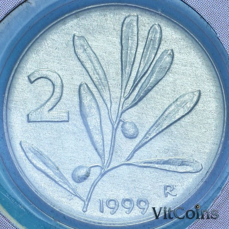 Монета Италия 2 лиры 1999 год. Пчела. BU