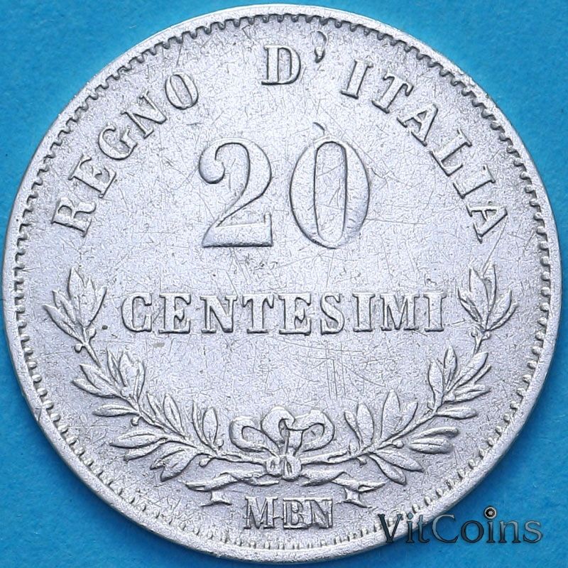 Италия 20 чентезимо 1863 год. Король Виктор Эммануил II (1861 - 1878)