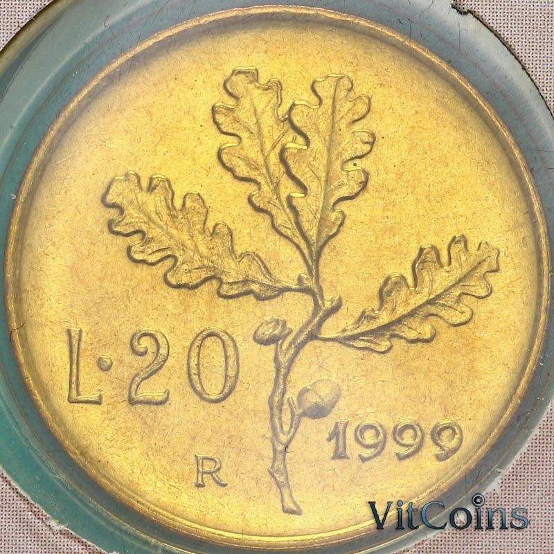 Монета Италия 20 лир 1999 год. BU