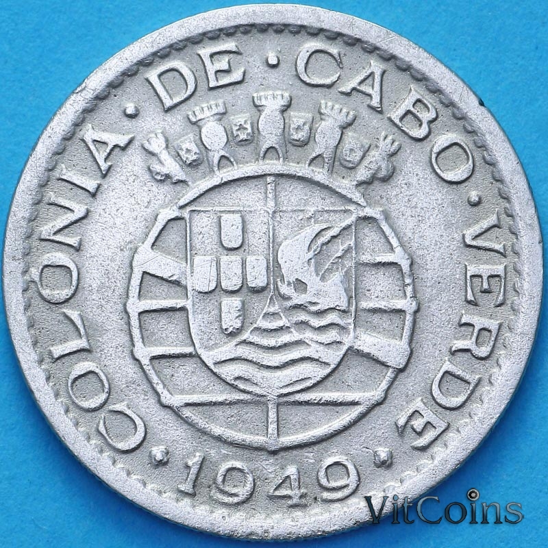 Монета Португальский Кабо Верде 50 сентаво 1949 год. Португальская колония до 1974 года.