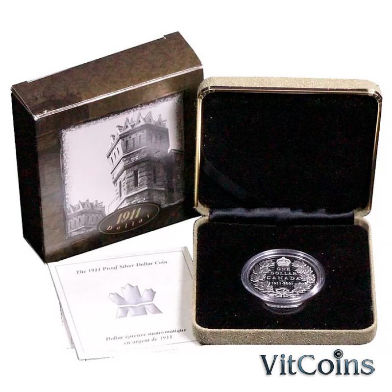 Юбилейная монета Канада 1 доллар 2001 год. Серебряный доллар 1911 года. Пруф. Коробочка