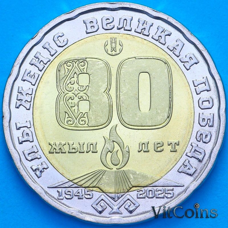 Юбилейная монета. Казахстан 200 тенге 2025 год. 80 лет Великой Победы