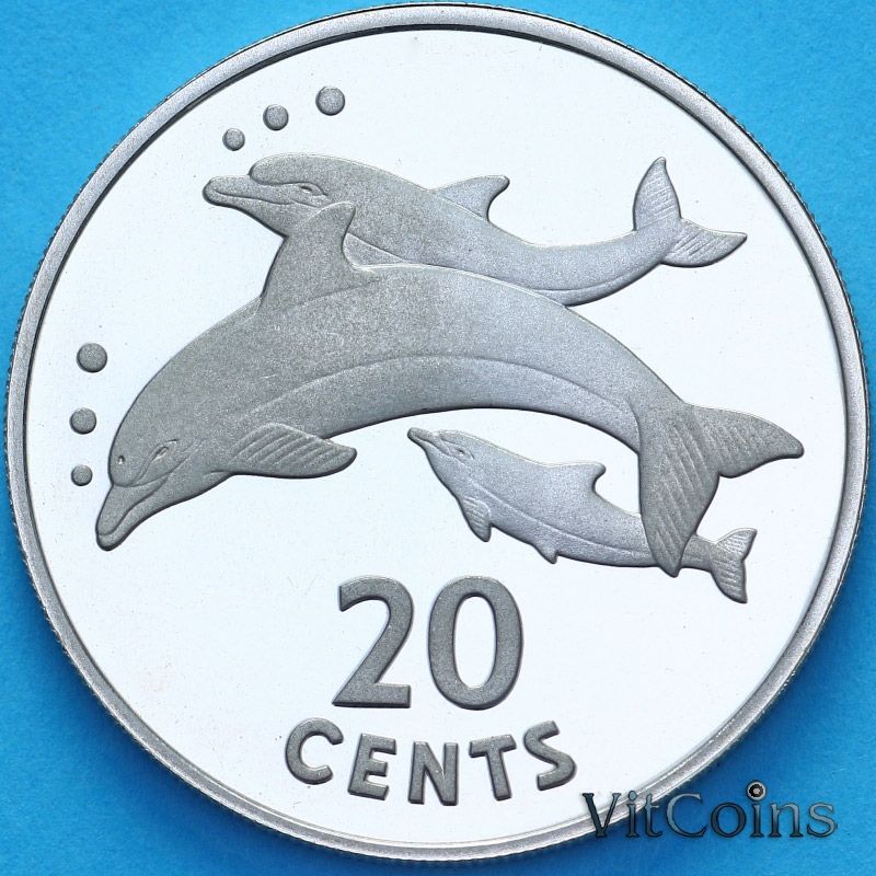 Монета Кирибати 20 центов 1979 год. Дельфины.