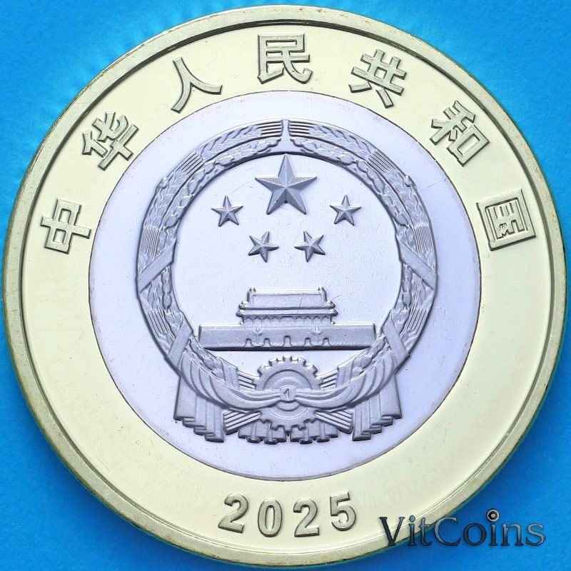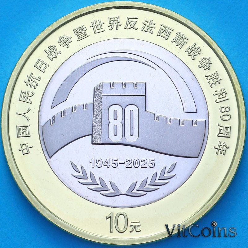 Китай 10 юаней 2025 год. Юбилейная монета. 80 лет Победы