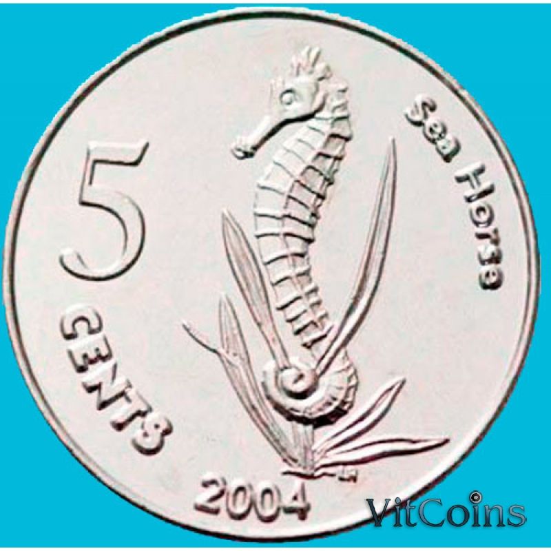 Монета Кокосовые острова 5 центов 2004 год. Морской конек