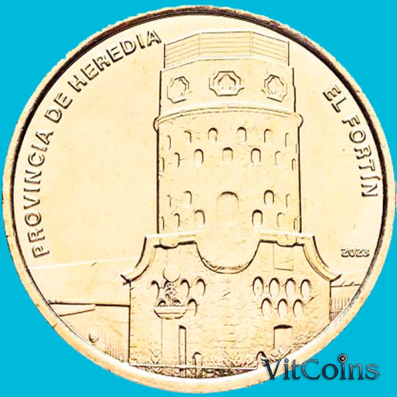 Монета Коста Рика 25 колон 2023 год. Серия "Провинции Коста-Рики". Эредия. Крепость Эль Фортин