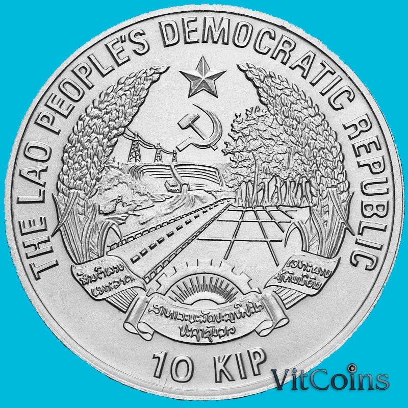 Юбилейная монета Лаос 10 кип 1988 год. Парусник "Пруссия"