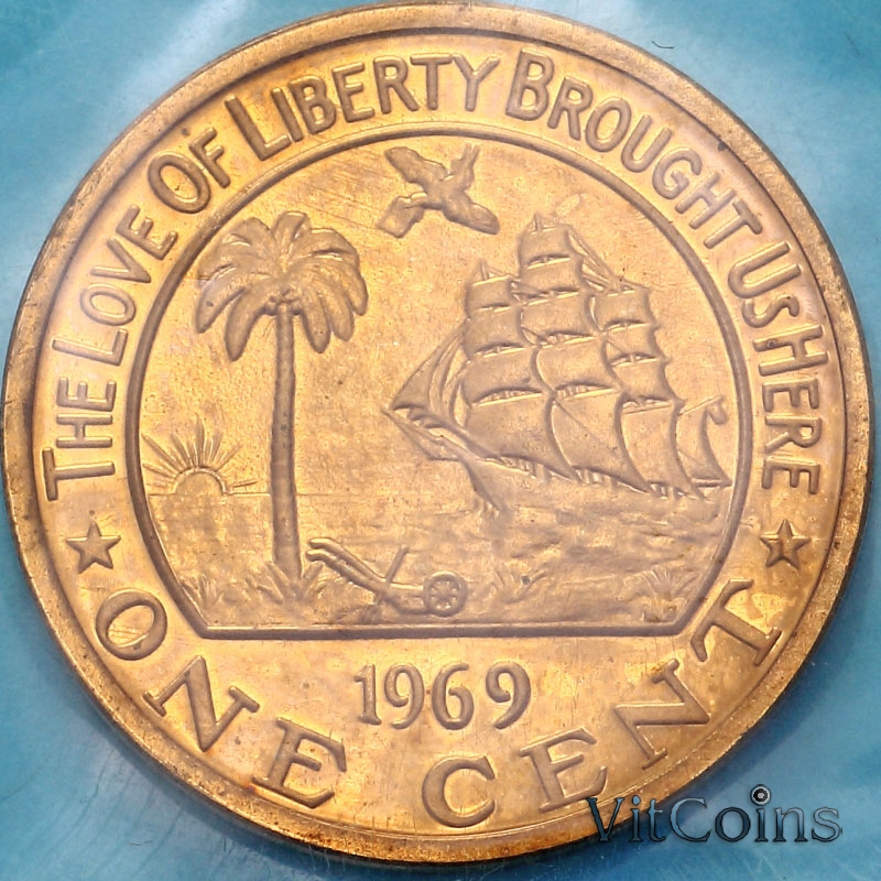 Монета Либерия 1 цент 1969 год. Слон. Proof.