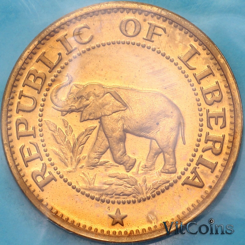 Монета Либерия 1 цент 1969 год. Слон. Пруф