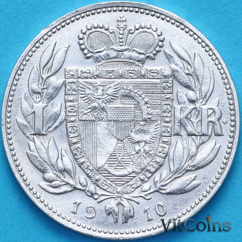 Монета Лихтенштейн 1 крона 1910 год. Иоганн II