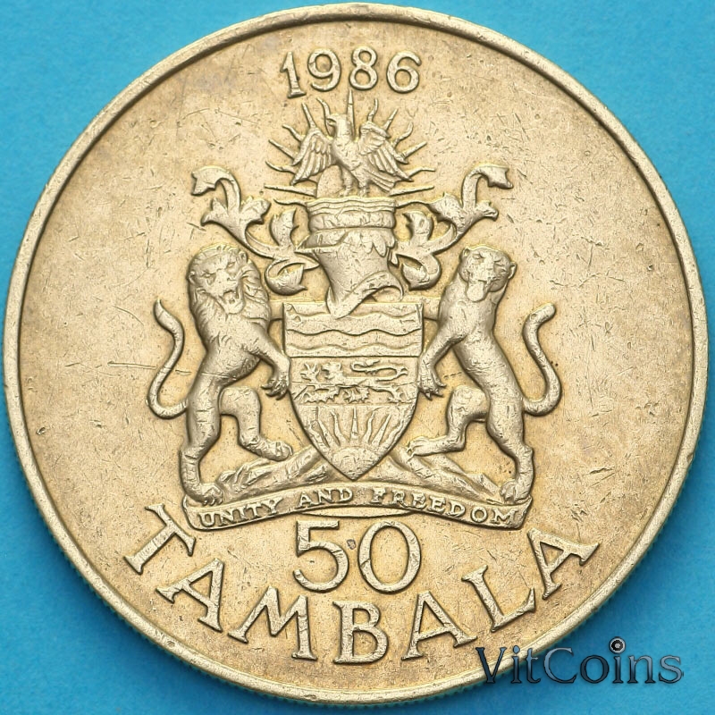 Редкая монета Малави 50 тамбала 1986 год.