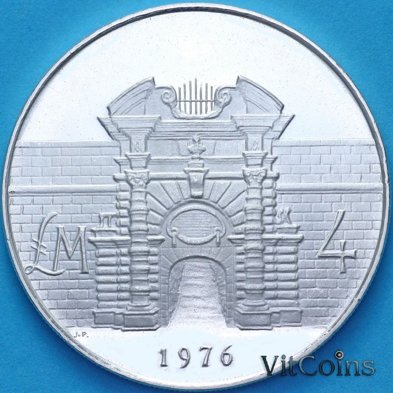 Юбилейная монета Мальта 4 фунта 1976 год. Ворота Форта Маноэль