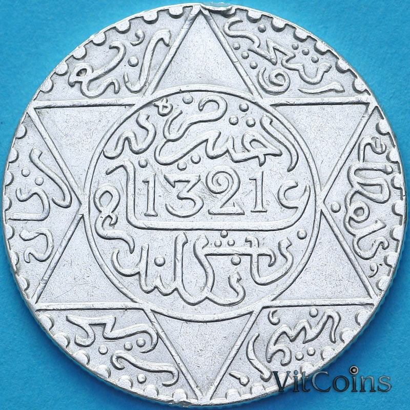 Монета Марокко 1/4 риала 1903 (1321) год. Монетный двор Лондон