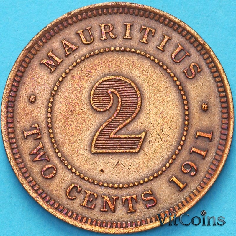 Монета Маврикий 2 цента 1911 год.