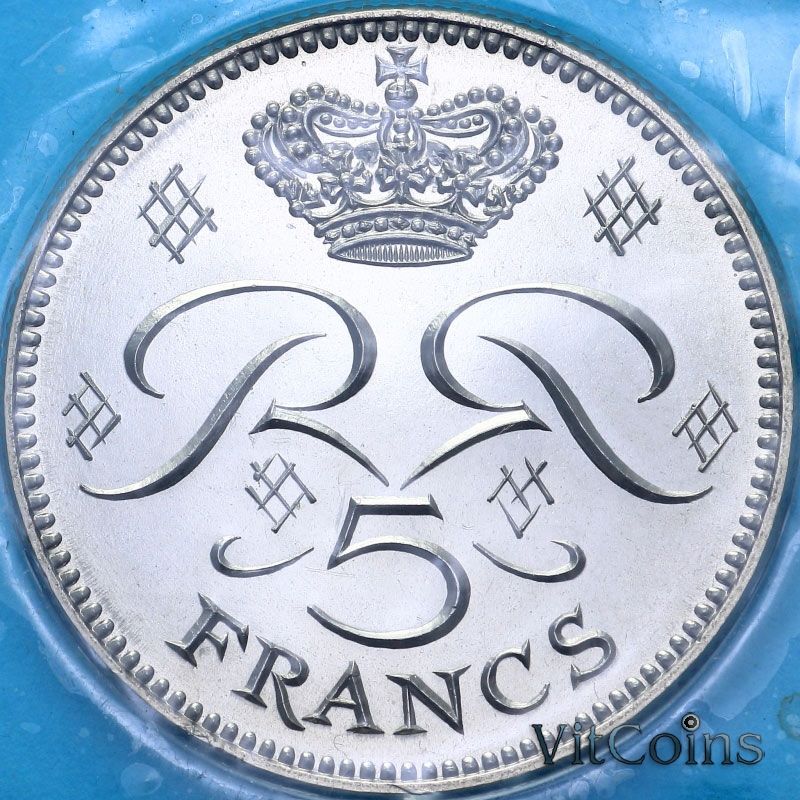 Монако 5 франков 1975 год. Принц Ренье. Новый франк Монако (1960 - 2001)