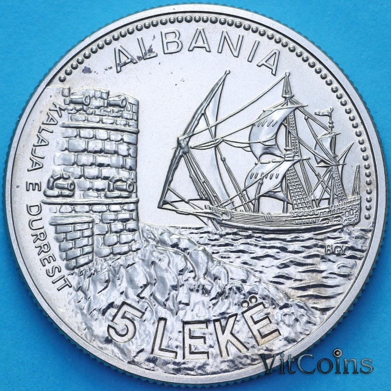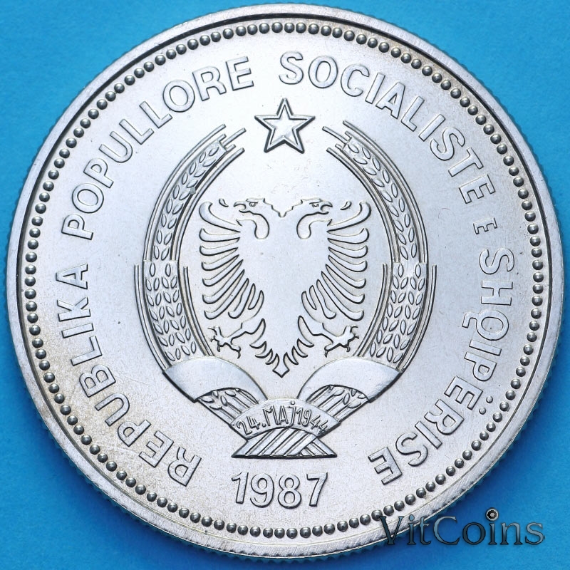 Монета Албания 5 лек 1987 год. 60 лет порту в Дурресе