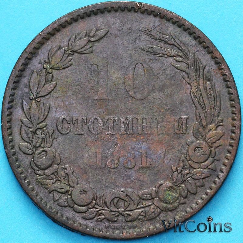 Монета Болгария 10 стотинок 1881. Княжество Болгария (1878-1907)