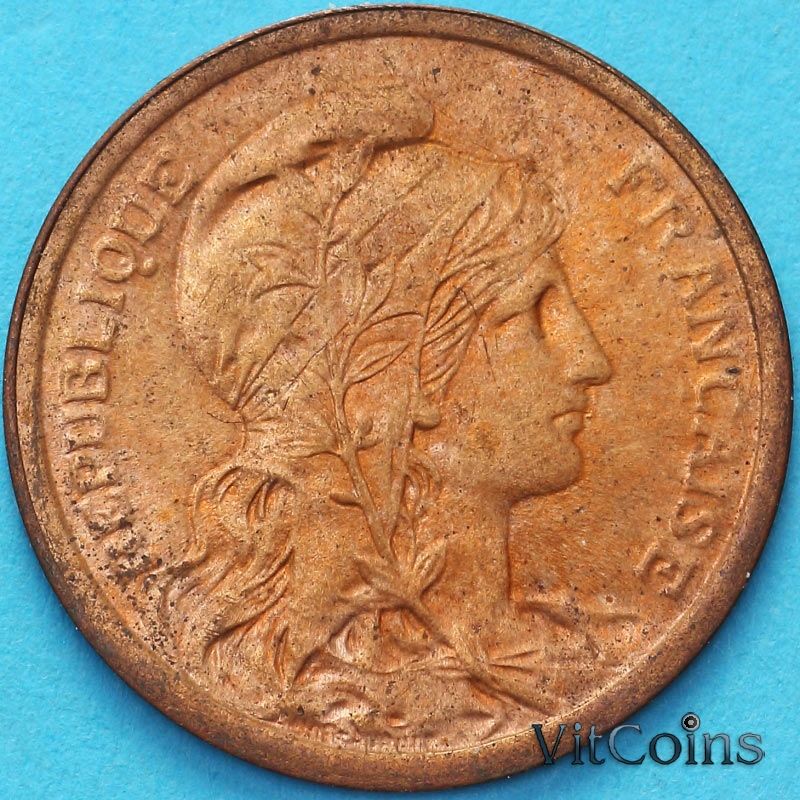 Монета Франция 2 сантима 1911 год.