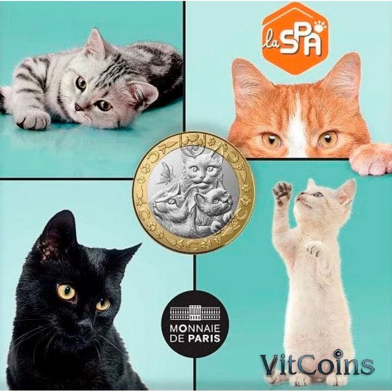 Монета Франция 5 евро 2025 год. Серия "Любимые животные французов" Кошка