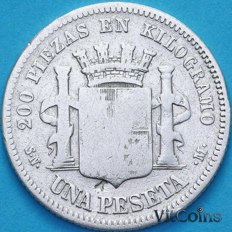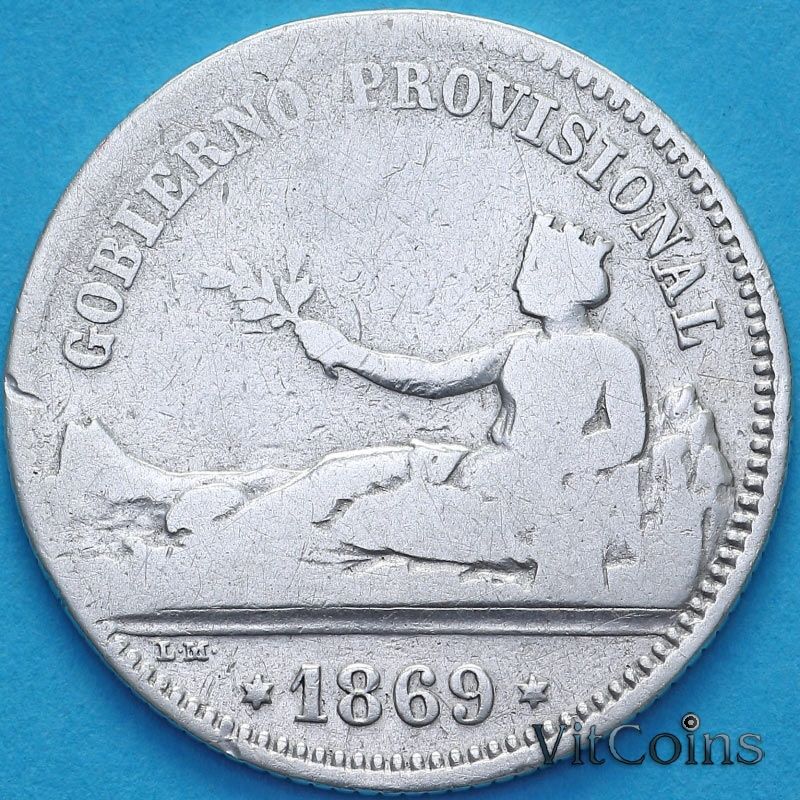 Монета Испания 1 песета 1869 год. Временное правительство (1869 - 1874)
