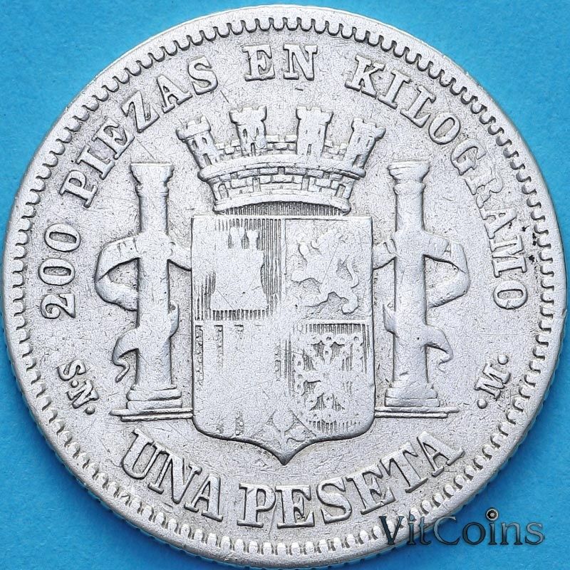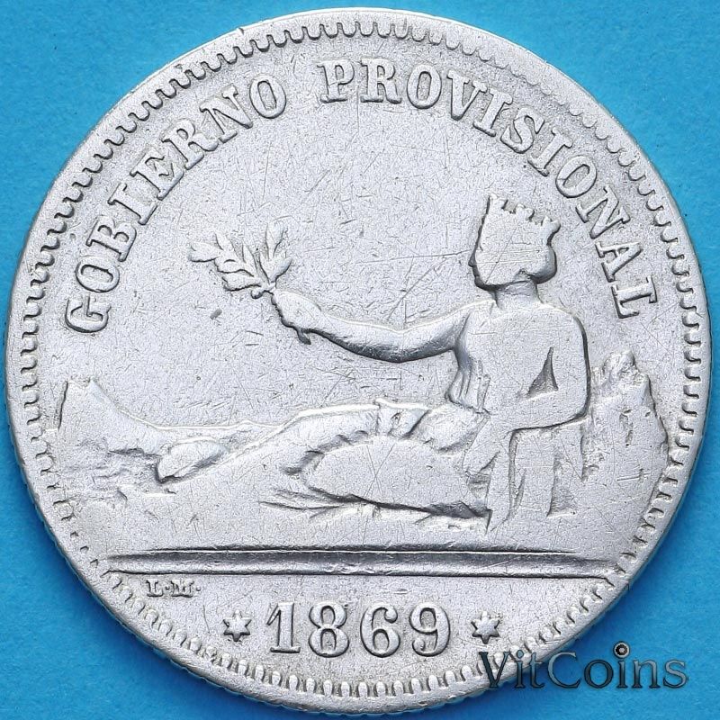 Монета Испания 1 песета 1869 год. Временное правительство (1869 - 1874)