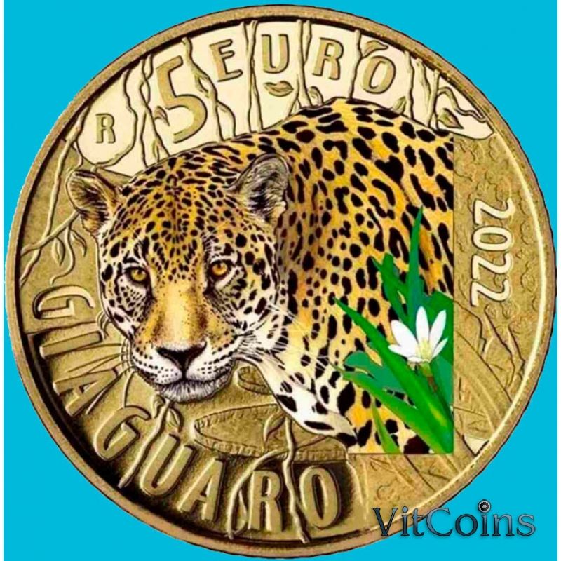 Монета Италия 5 евро 2022 год. Серия "Устойчивый мир. Вымирающие животные". Ягуар