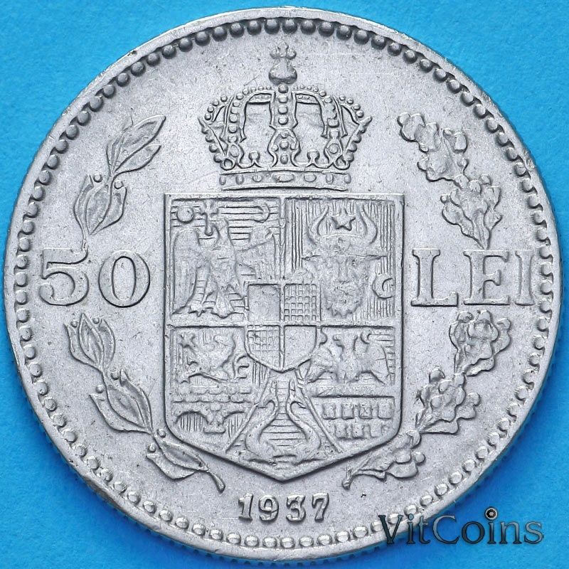 Монета Румыния 50 лей 1937 год. Король Кароль II.