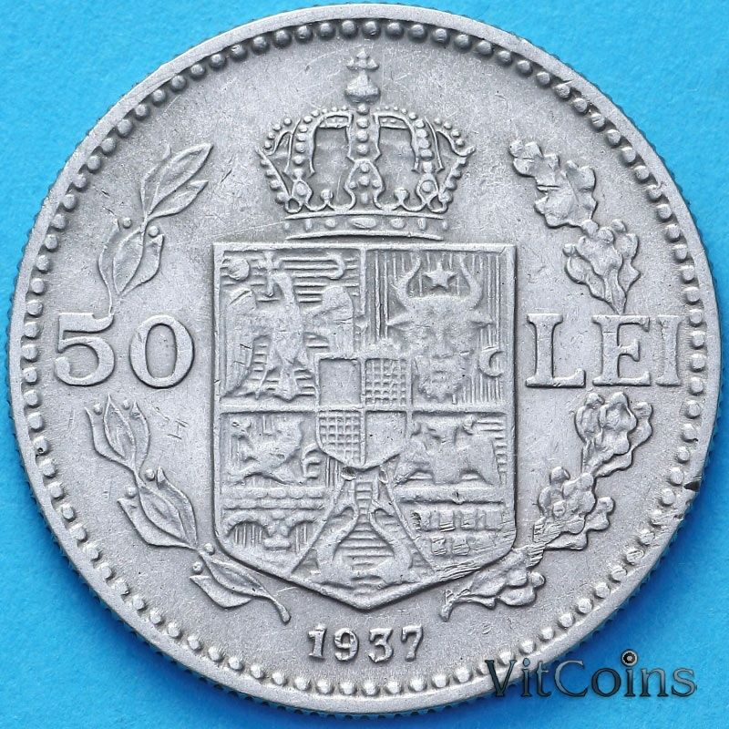 Монета Румыния 50 лей 1937 год. Король Кароль II.