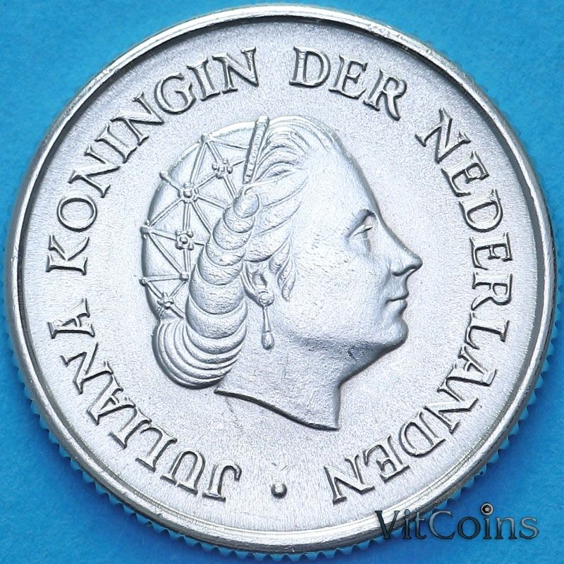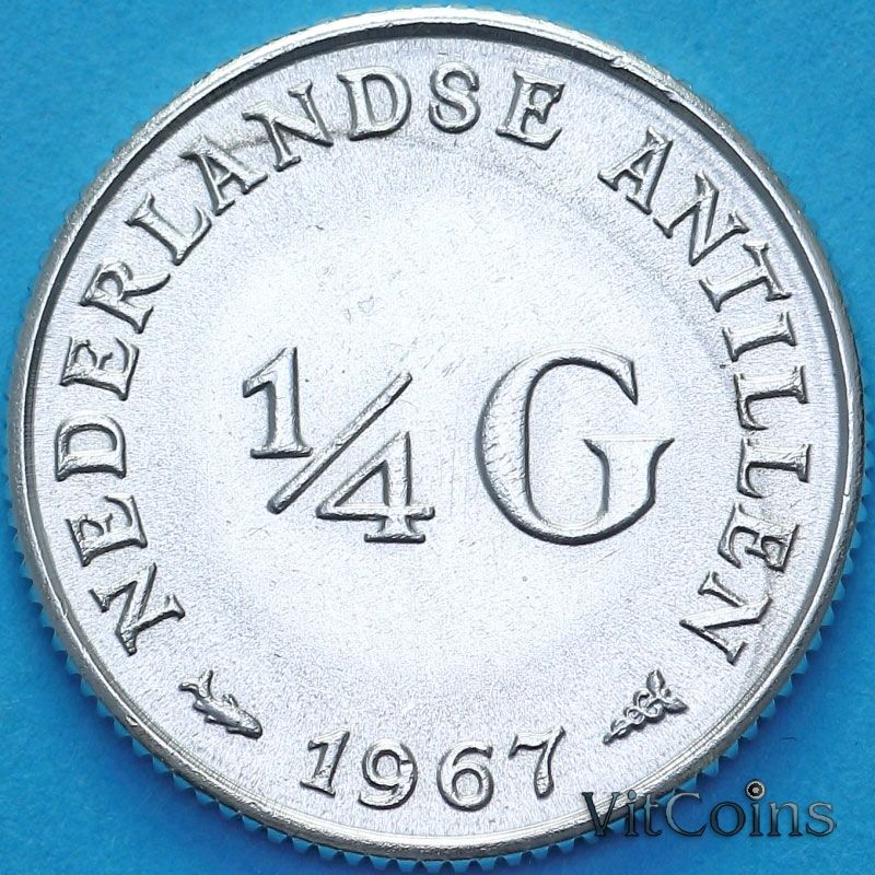 Серебряная монета Нидерландские Антилы 1/4 гульдена 1967 год.
