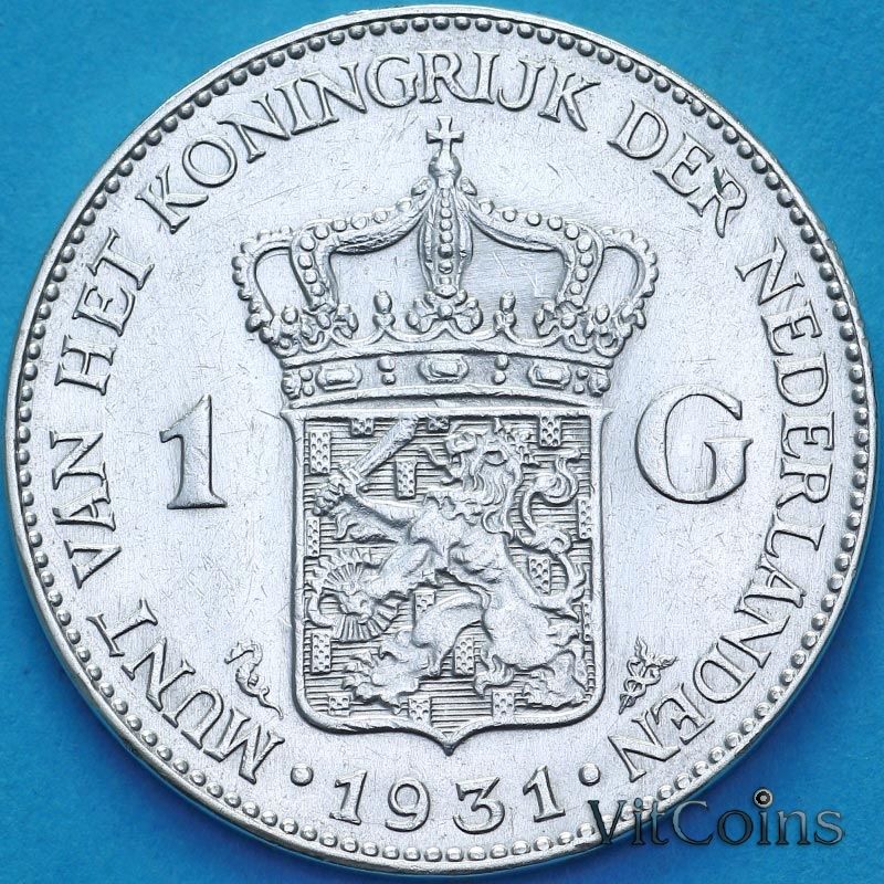 Монета Нидерланды 1 гульден 1931 год. Серебро.