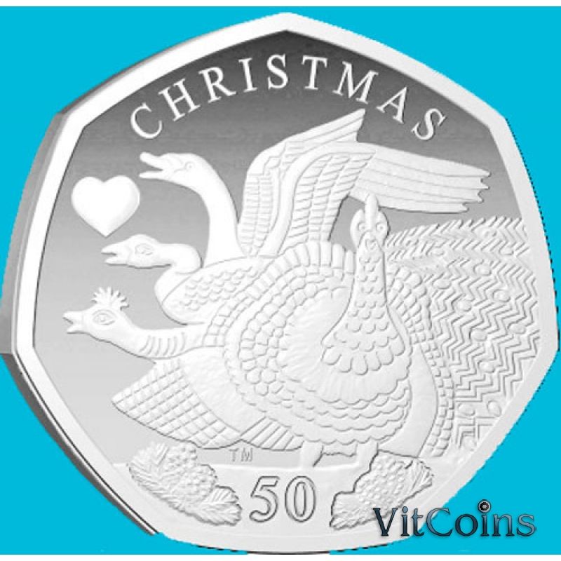 Монета Остров Мэн 50 пенсов 2025 год. Серия "12 дней Рождества"