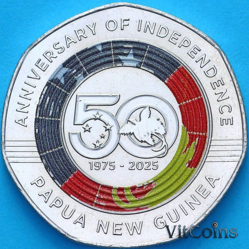 Папуа Новая Гвинея 50 тойя 2025 год. Юбилейная монета. 50 лет Независимости