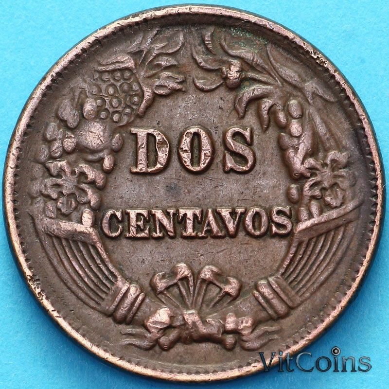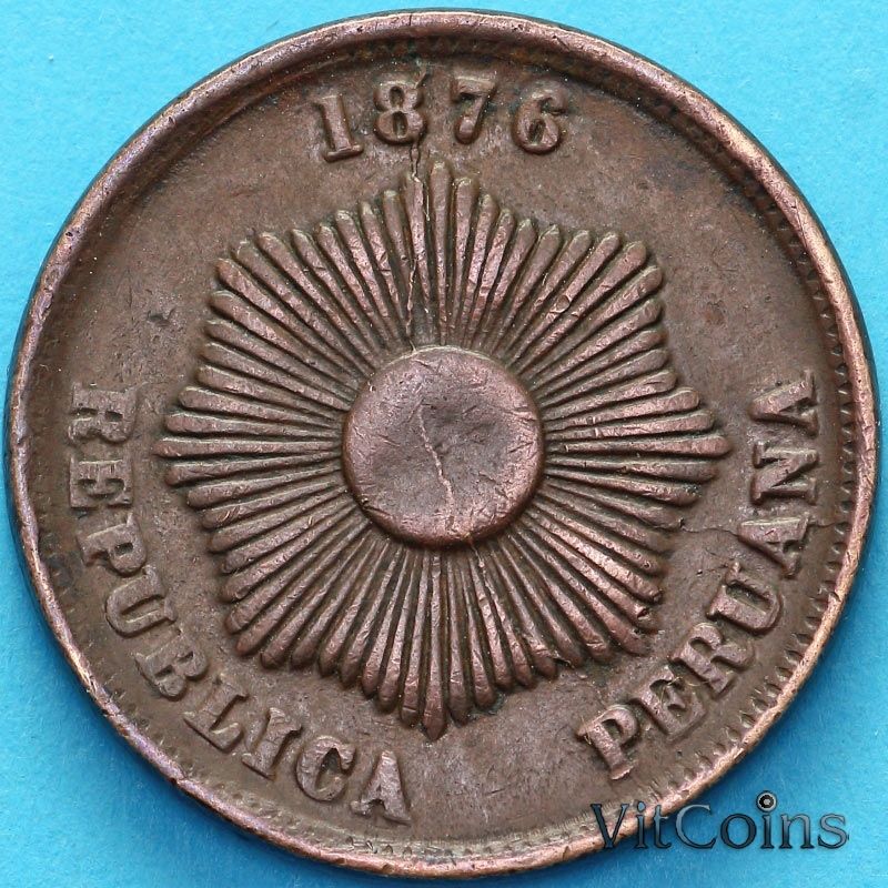 Монета Перу 2 сентаво 1876 год.