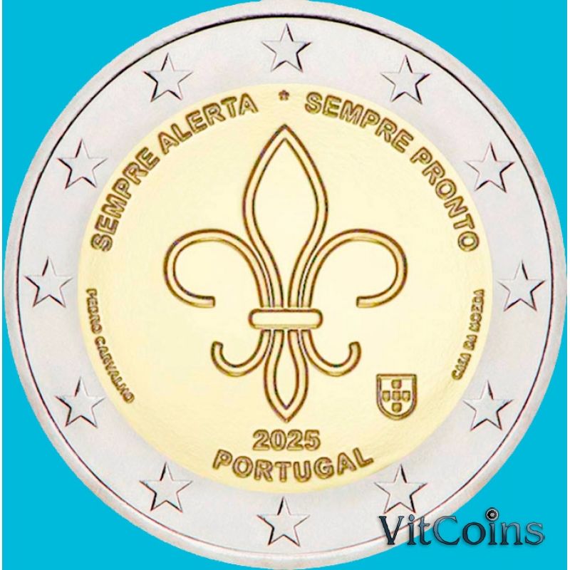 Юбилейная монета Португалия 2 евро 2025 год. Всемирный день бойскаутов