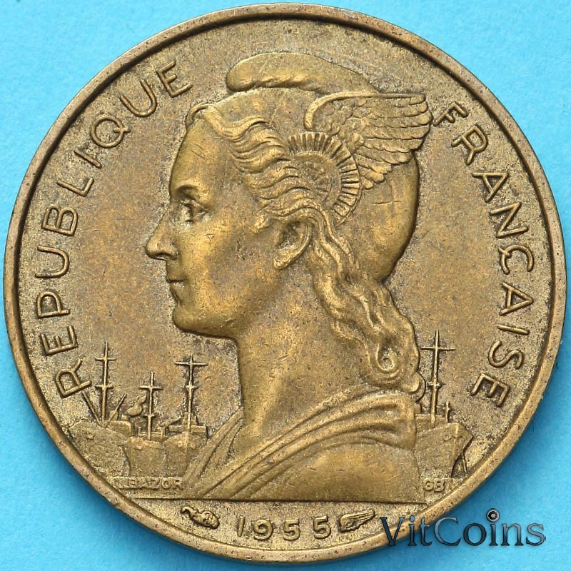 Монета Реюньон 20 франков 1955 год.