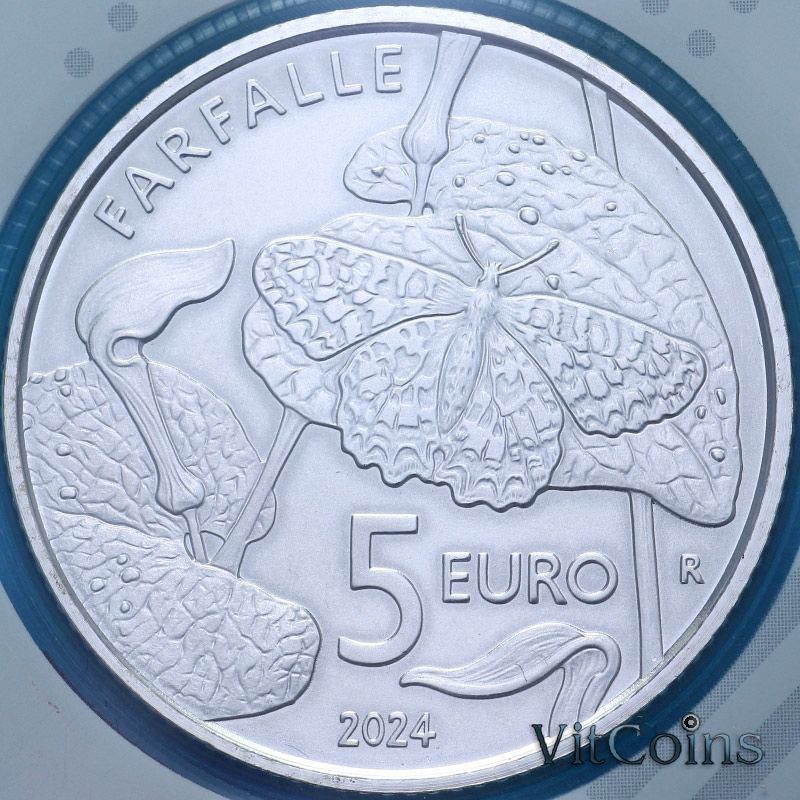 Юбилейная монета Сан Марино 5 евро 2024 год. Бабочка Южный Фестон