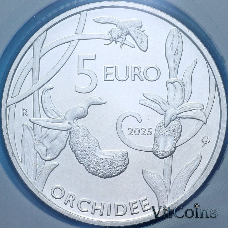 Юбилейная монета Сан Марино 5 евро 2025 год. Орхидея Бертолони