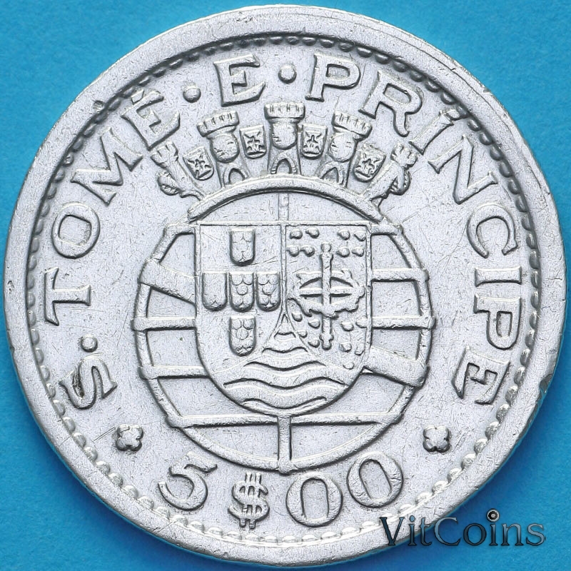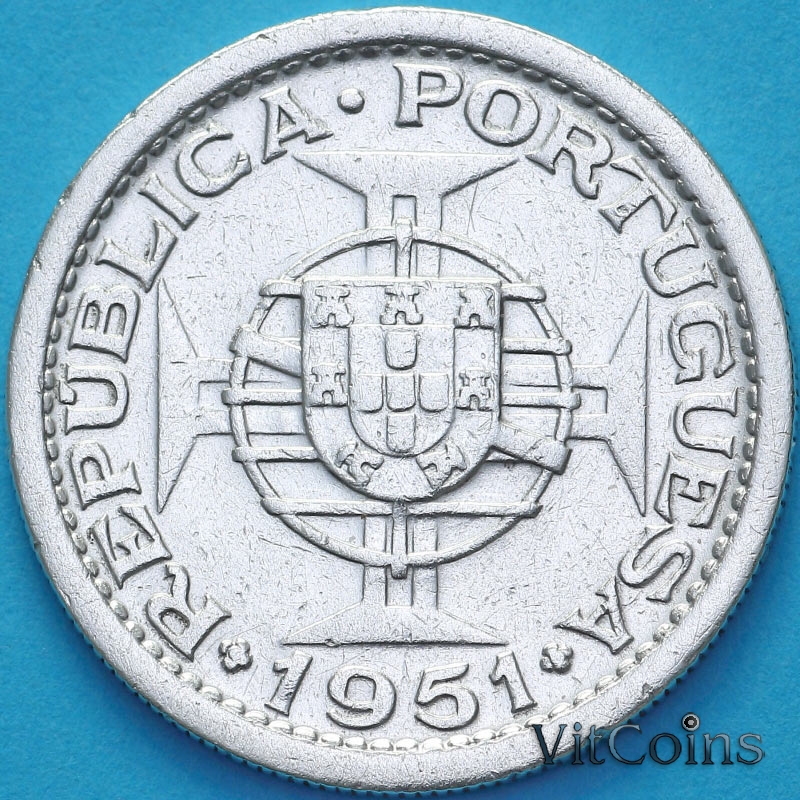 Португальский Сан Томе и Принсипи 5 эскудо 1951 год. Серебро.