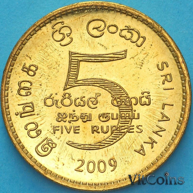 Монета Шри Ланка 5 рупий 2009 год.