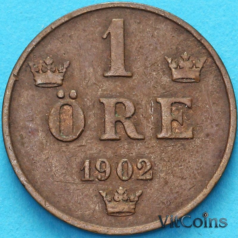 Монета Швеция 1 эре 1902 год. Король Оскар II (1873 - 1907)