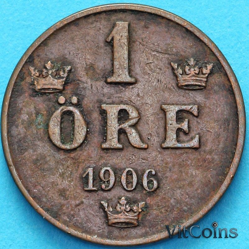 Монета Швеция 1 эре 1906 год. Король Оскар II (1873 - 1907)