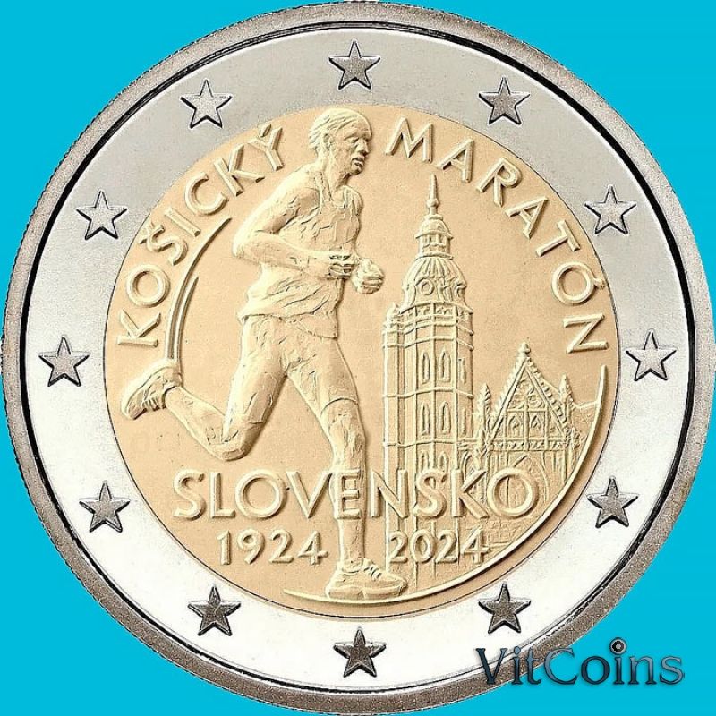 Юбилейная монета Словакия 2 евро 2024 год. 100 лет Кошицкому марафону