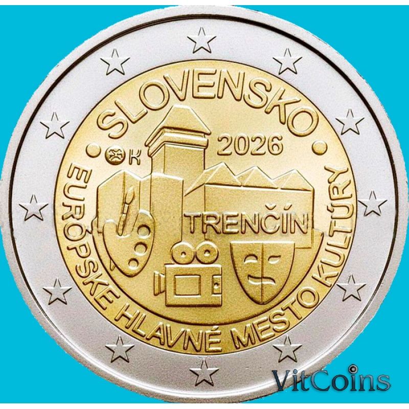 Юбилейная монета Словакия 2 евро 2025 год. Тренчин - Культурная столица Европы 2026