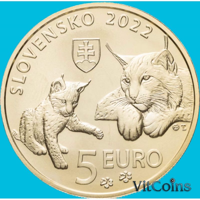 Монета Словакия 5 евро 2022 год. Рысь