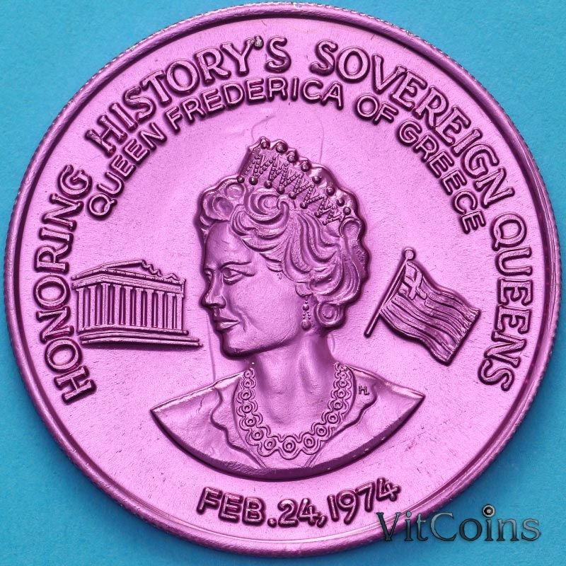 США жетон Mardi Gras 1974 год. Королева Фредерика Греческая