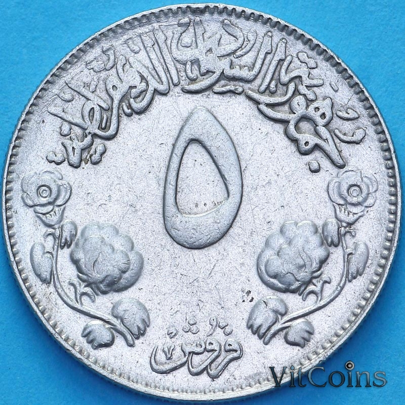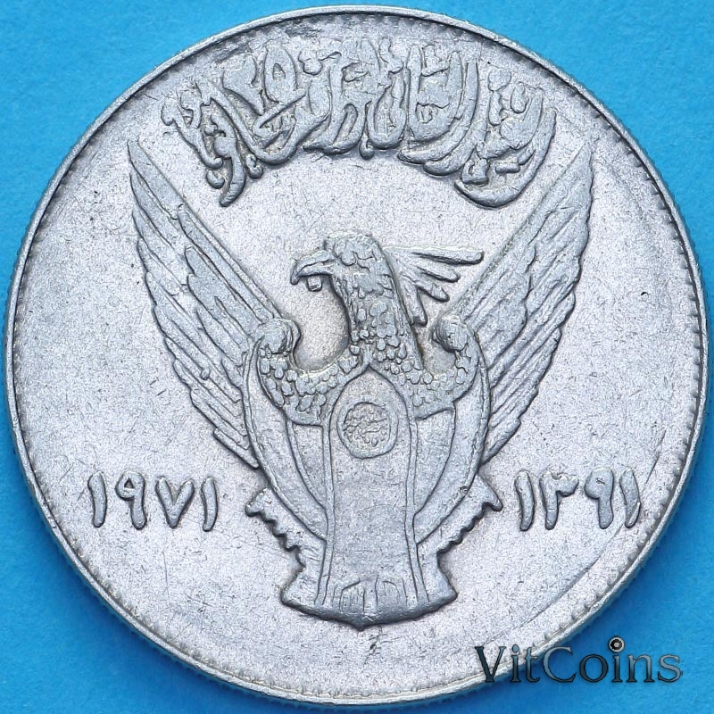 Монета Судан 5 гирш 1971 год. 2-я годовщина революции