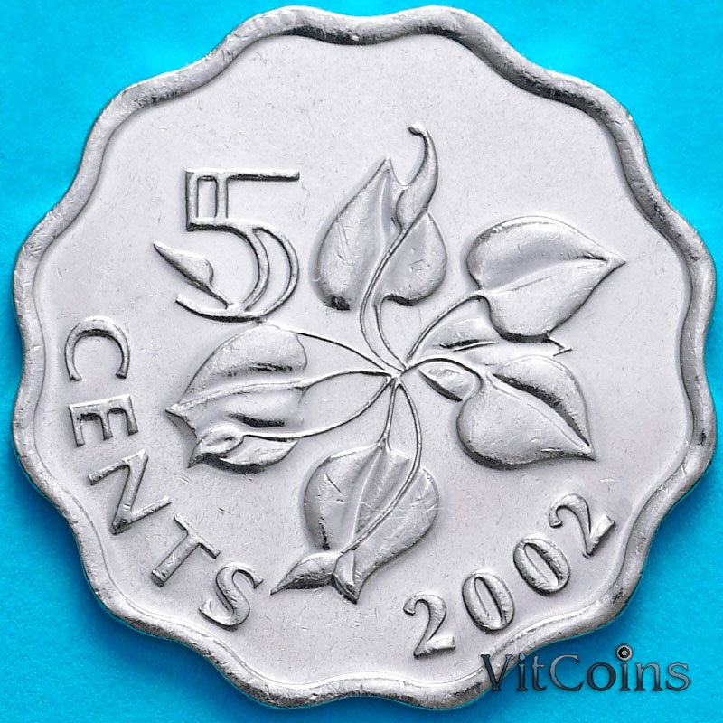 Монета Свазиленд 5 центов 2002 год. Немагнитная.