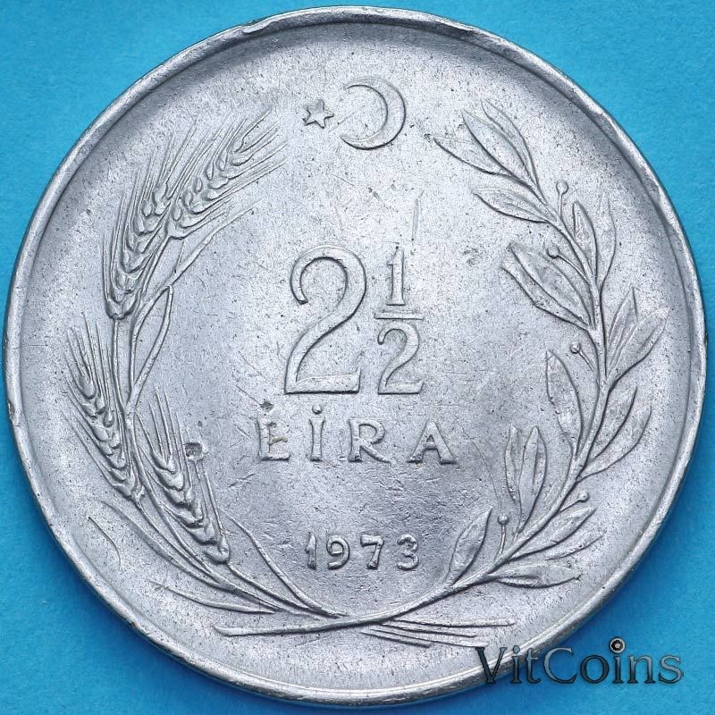 Монета Турция 2,5 лиры 1973 год.