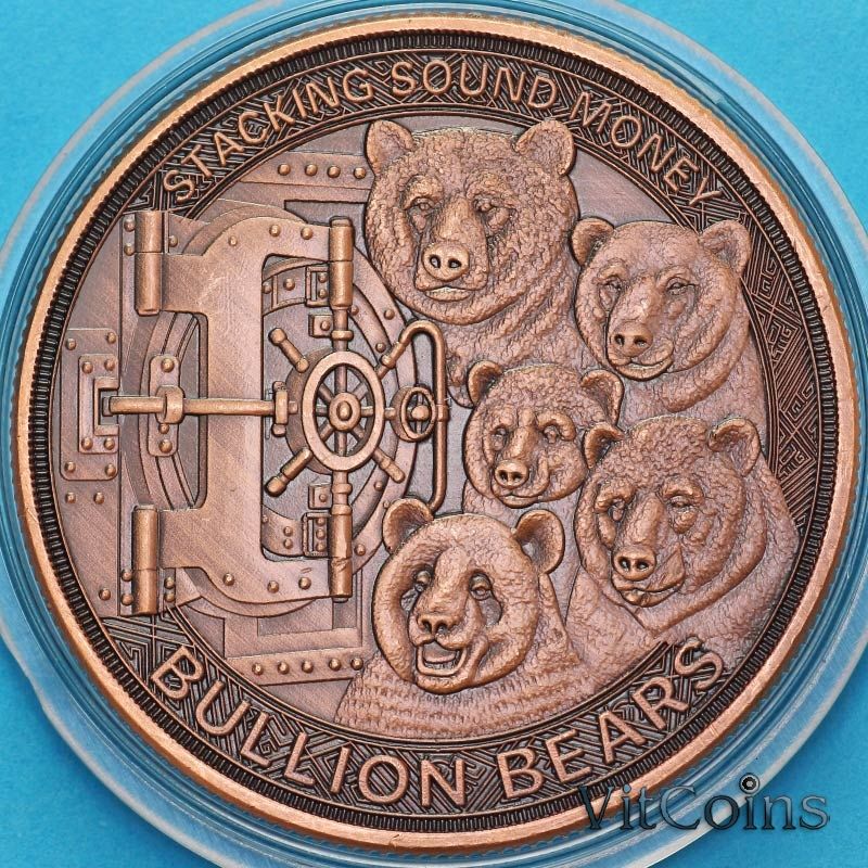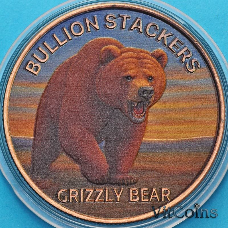 Монетовидный жетон унция меди 999 США. 2025 года. Гризли. Цветная