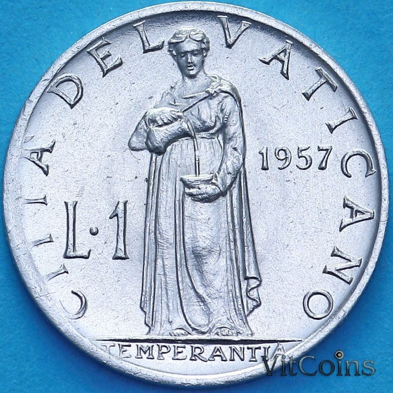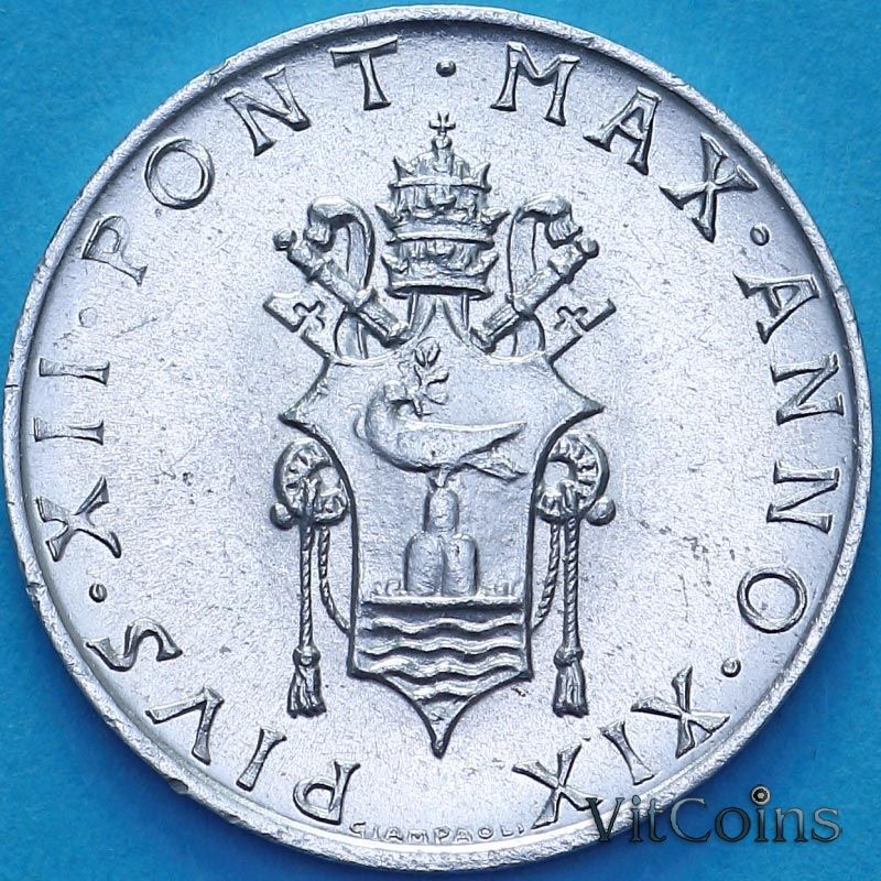 Монета Ватикан 1 лира 1957 год.
